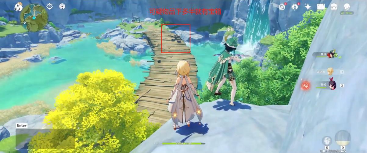 比如说当你在山上鸟瞰时,发现桥上有一堆杂物,很多萌新就不去管了,那就有很大概率错过了一个神秘宝箱。