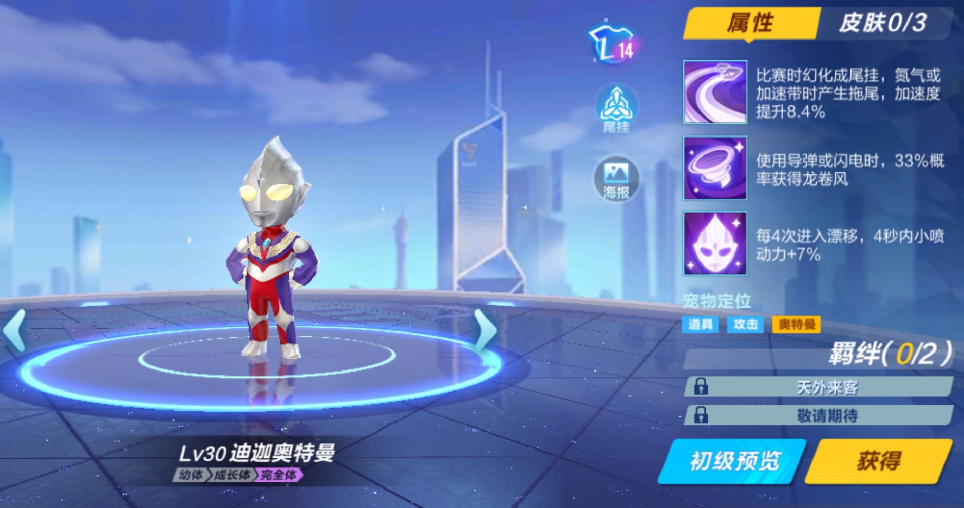 竞速宠物,其三技能为固定触发,不用担心概率问题,虽然迪迦奥特曼也可以跑道具,但是容易误伤队友,不太推荐道具使用。