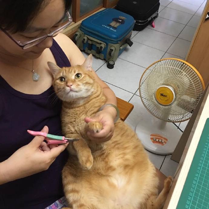 网友家的猫咪剪指甲的时候,那眼神:麻麻,要温柔点哦!哎呀,心都化了~by:FB:Yi-Ping Lin