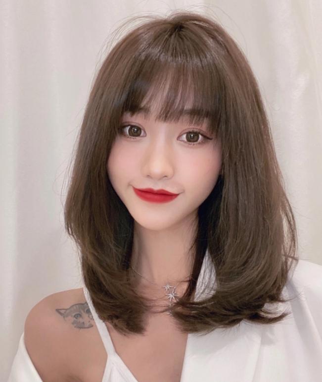 这种气质的女生蛮适合刘海的,比较显年轻,再加上这种长卷发,带点栗子色,反而显得甜美又减龄。