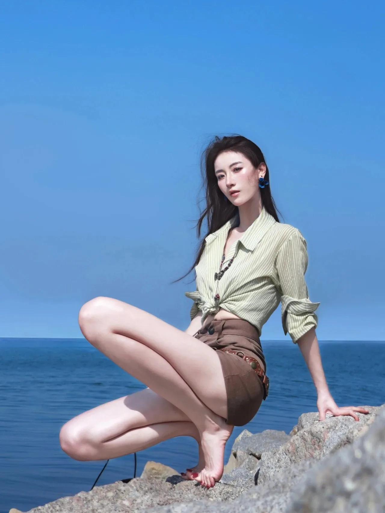 海边拍照如何拍出大长腿