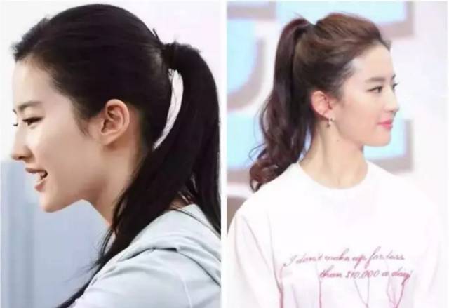 所以你看明星们扎马尾,都保持45°的挺立,不但很有少女感,也很修脸型。