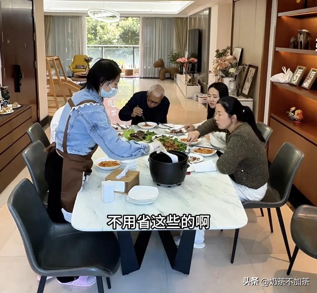 其实红姐也没省,她也不会省,她从来不会吃亏的。她做了5块牛排,还有1块放在厨房的锅里没端出去,她是想给自己留着吃,她每次都是在厨房偷吃,她就是想在厨房吃完再出去客厅。她就是没给胖阿姨做一份,因为她不喜欢胖阿姨,所以不想做给胖阿姨吃。