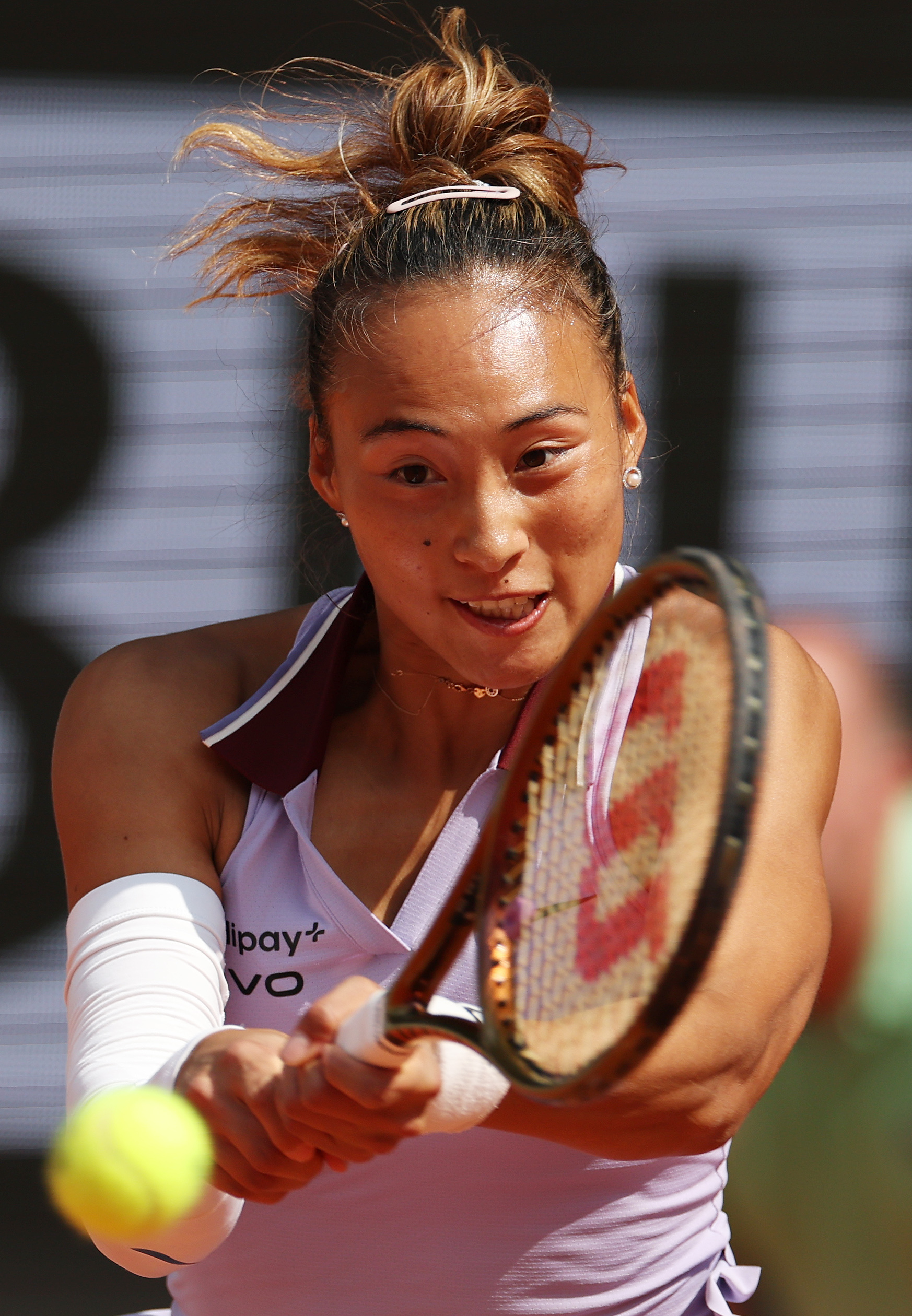 当日,在巴黎举行的2025法国网球公开赛女子单打四分之一决赛中,中国选手郑钦文对阵白俄罗斯选手萨巴伦卡。