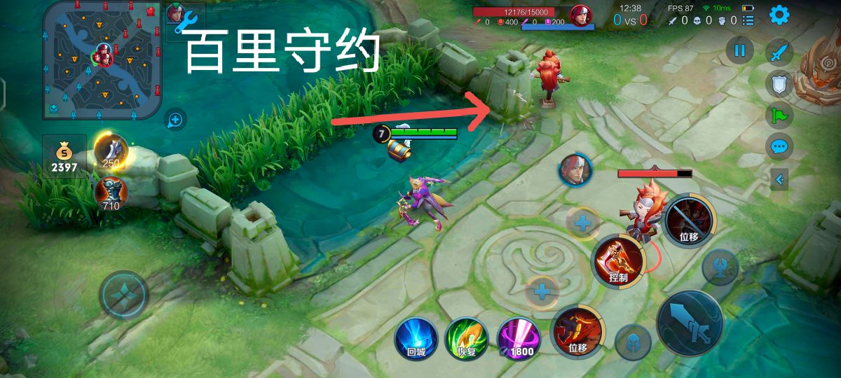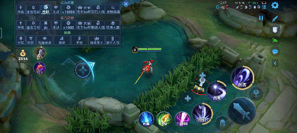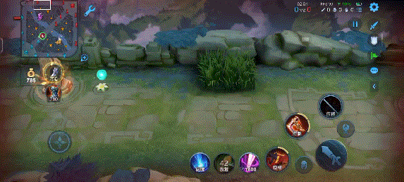 我们可以看到,左边的移动摇杆会一直跟随着我们的拇指点击的位置而变化,这样可以大大提高我们的位移灵敏度,避免出现我们拇指已经往回2拉的时候,英雄还往前走这样的情况。