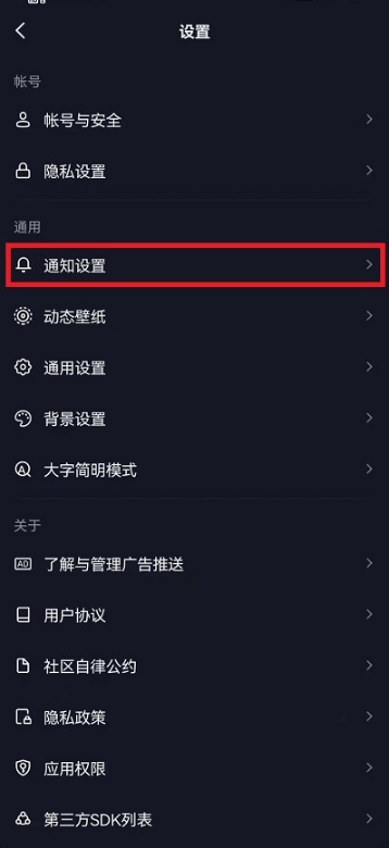 3、找到通知设置并点击。