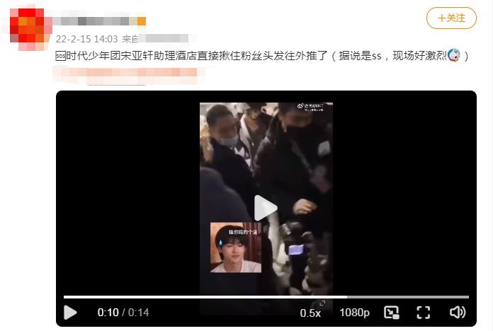 #宋亚轩遭私生饭围堵#、#宋亚轩工作人员抱摔粉丝#、#宋亚轩#