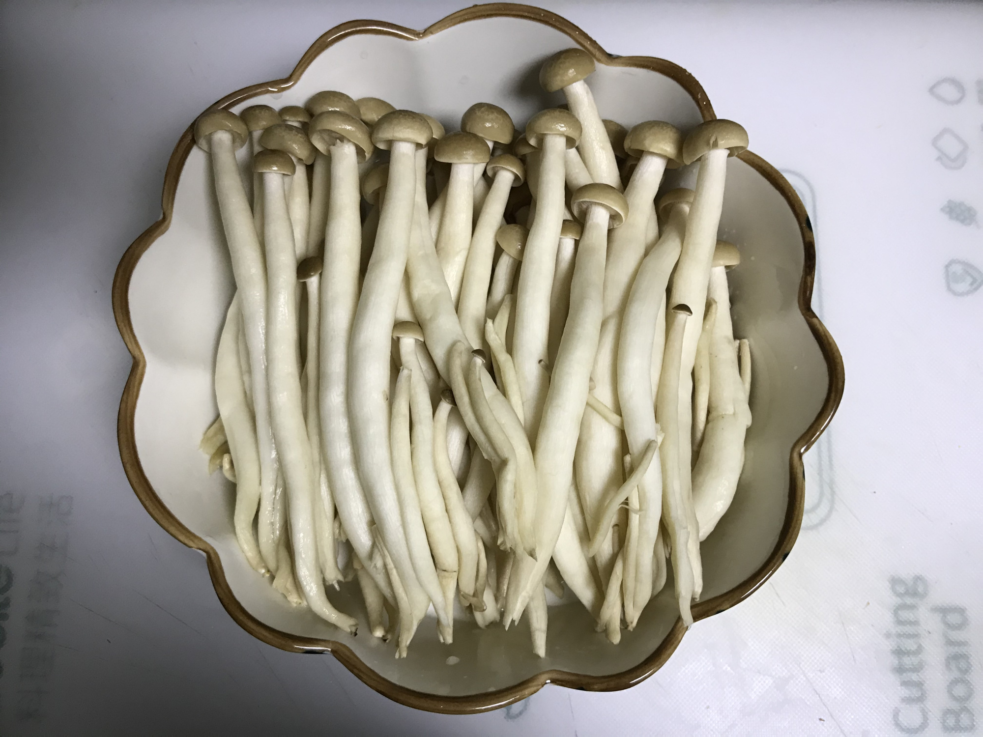 食材用料:蟹味菇1包、葱1棵、蒜6瓣、轻盐酱油适量
