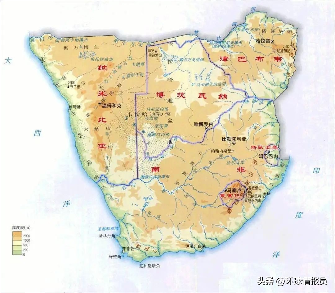 ▲非洲南部地形图