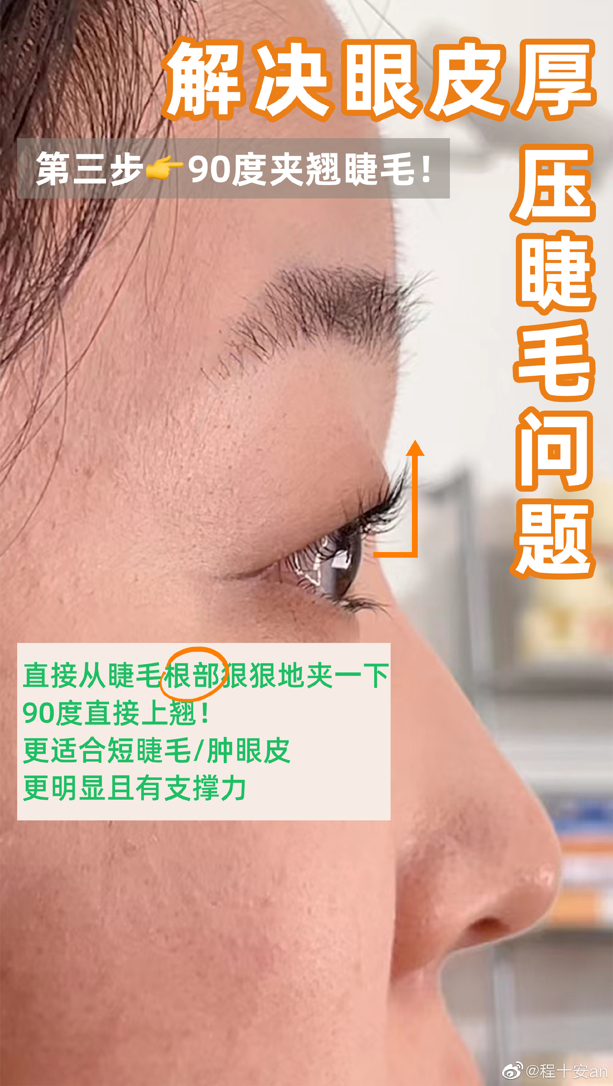 接下来就是睫毛的问题了,睫毛一定要夹的翘一些,这样不仅看起来更加力挺,再加上睫毛刷部分,这样可以解决眼皮厚。