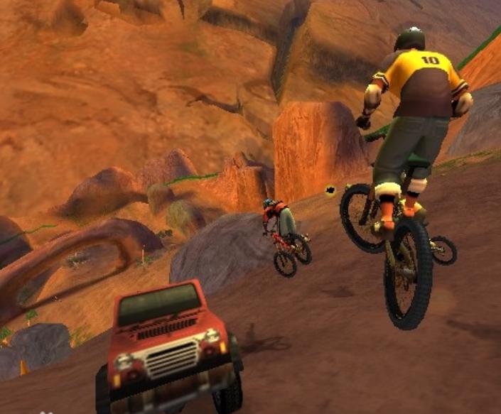 我小时候非常喜欢的一款赛车游戏,是《战神》开发商圣莫妮卡早年间制作的《暴走山地自行车》。游戏的画面在PS2时代也不算出色,但玩起来非常爽快,全程就是从山顶一路俯冲,中途可能会遇到各种路障、撞上野生动物,甚至不小心冲到城市里,你永远猜不到下一个关卡会是什么结构。