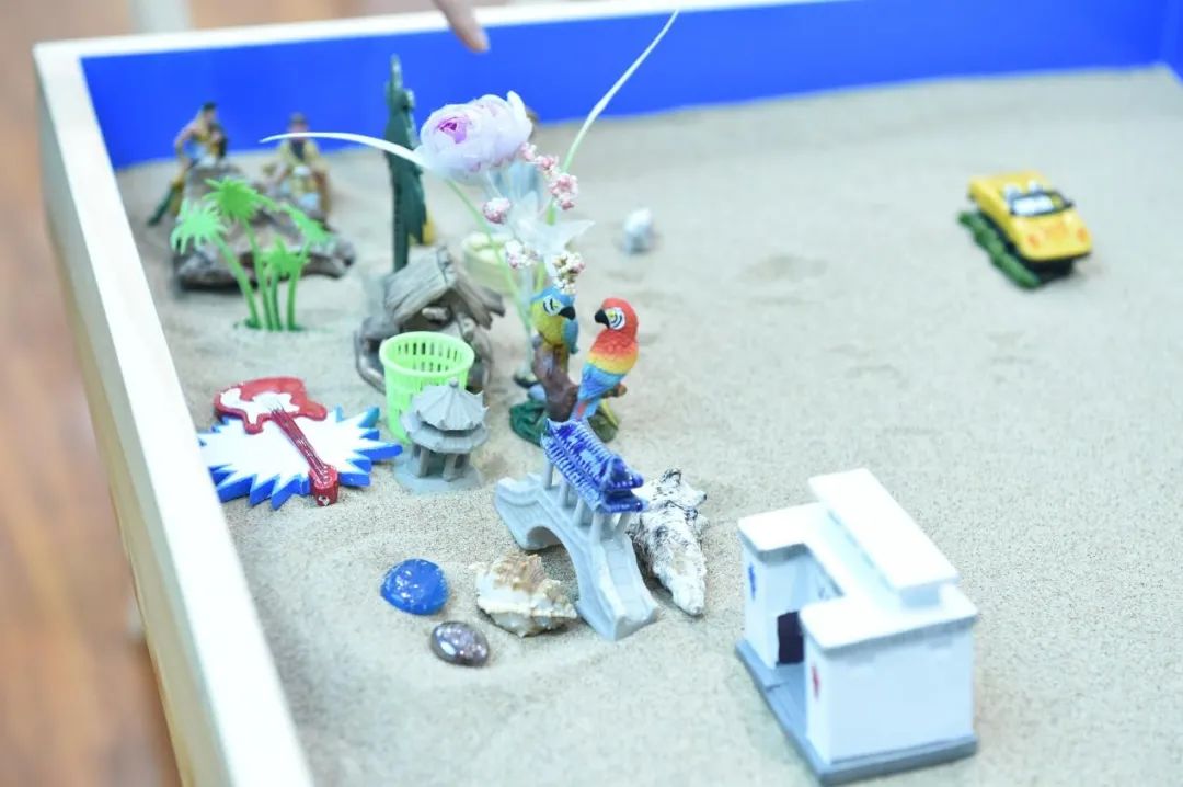 心理咨询师为未成年人开展心理咨询的沙盘。