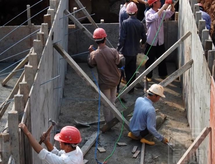 当时的施工设备有限,许多地方只能依靠人工来进行建设。大规模的挖掘、填土、砌墙工作,都需要工人们一锹一锹地完成。