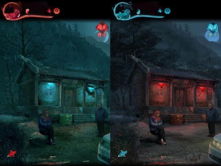 再到《纸嫁衣3:鸳鸯债》,又引入了新玩法“切换视角解谜”。《鸳鸯债》中你可以同时代入男女两位主角的视角冒险。许多时间里,女主以灵魂姿态身处于阴阳界中,相当于同一片空间里的平行世界。男女主的能力也不一样,男主看不到灵异事物,女主则无法搬运物品,需要互相配合解谜,有点像在玩双人游戏。