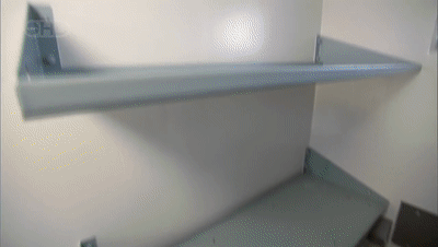 最后再吊上床铺,接上马桶,装上防切割窗,灯具等等。因为犯人们一年有365天可以用来想出破坏方法,所以一切东西都要非常坚硬,非常牢固。
