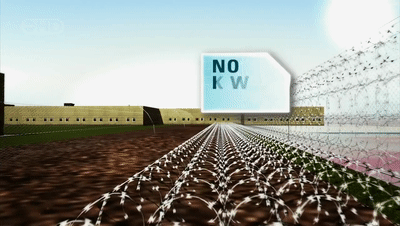 而两道围栏中间也布满了电子感应器,如果有人从中间穿过的话,系统瞬间就能捕捉到。同时在地面上,还布满着带锋利刀尖的铁丝网,这些铁丝网同样也装有感应器。