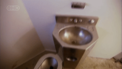 马桶是用一种非常坚硬的不锈钢打造,因为之前经常会有犯人把瓷马桶敲成碎片做武器。因此新的监狱就改成了,从控制室可直接控制马桶里的水流。这样在检查时,犯人就没法再把违禁品通过马桶冲下去了。