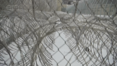 其实就算你逃出了牢房,而外面的牢区才叫地狱模式。首先是两道铁丝围栏,上面是加宽防爬的刀网设计。