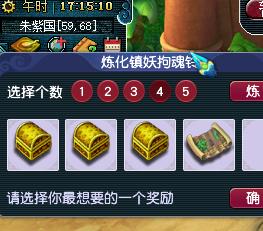每当周六下午降妖伏魔活动结束之后,玩家可以前往长寿郊外的鬼谷道士那里进行铃铛炼化,也就是炼化镇妖拘魂铃。玩法是这样的,一次可以选择1到5个炼化数量,具体放入多少个,这个看个人喜好。但放入的铃铛数量不同,弹出来的奖励也不一样。根据数学概率,选择的数量越多越容易得到好奖励,因为概率增大了。不过不管弹出多少个奖励,我们只能选择其中一个,所以铃铛数量有点浪费。那么怎么选择才划算呢?最节省的玩法就是用1个炼化,但奖励无法看,大多数都是经验,好一点的话得到一张宝图。当然,也有运气爆表的,一个铃铛也可以炼化出大五宝定魂珠。由此可知,一个铃铛炼化是不可取的。