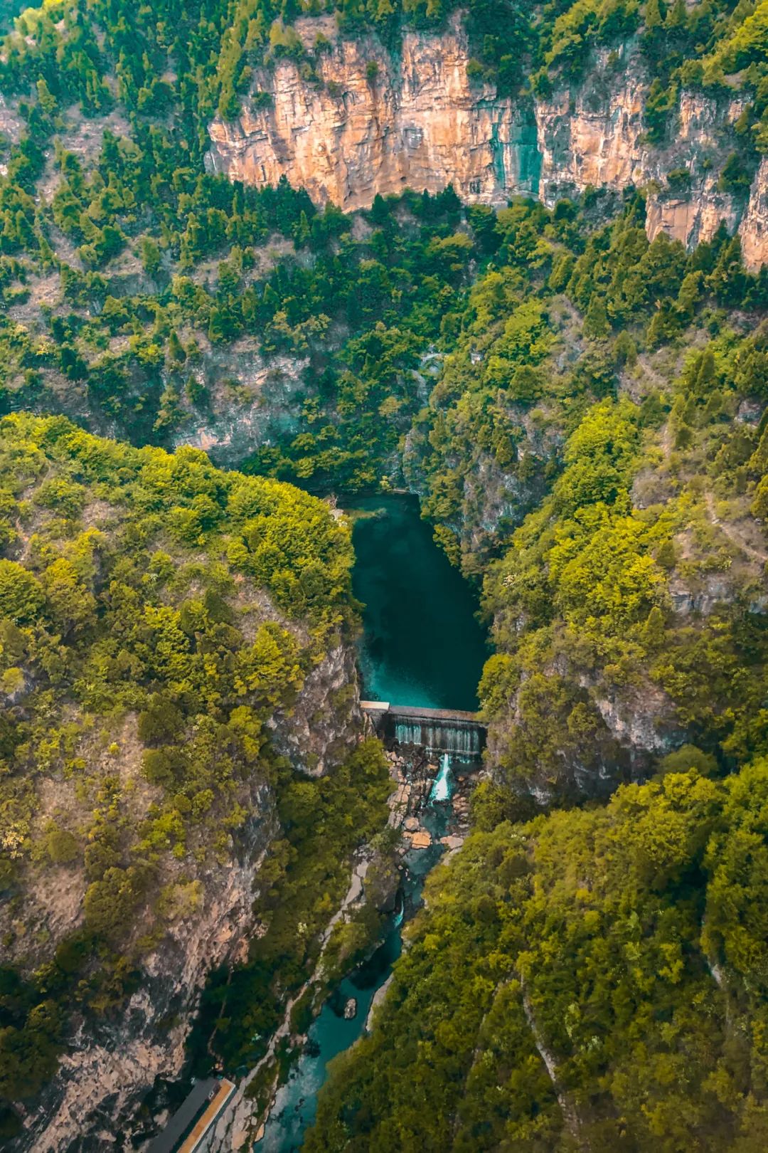 八泉峡位于山西太行山大峡谷内,峡谷两岸绝壁高耸,山峰巍峨,站在谷底仰望,只见天空如线,峡谷气势磅礴,给人以强烈的视觉冲击,湖水碧绿,乘船游览,仿佛置身于一幅山水画卷之中。
