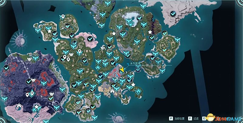 夜晚出现的帕鲁栖息地涂色为蓝色。