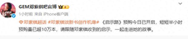 邓紫棋新书《启示路》半小时预购已超十万本,每本平装售价89元
