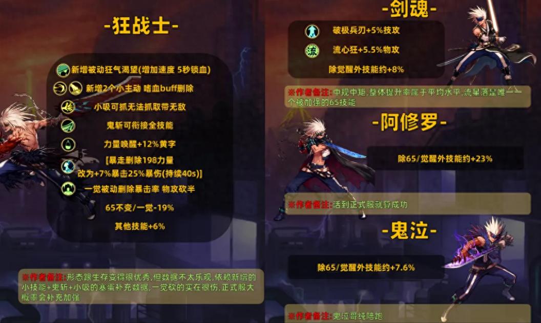 下面来看看宝哥外置大脑“墨羽狼”统计的全职业数据改动,因为只是体验服更新,所以仅供参考: