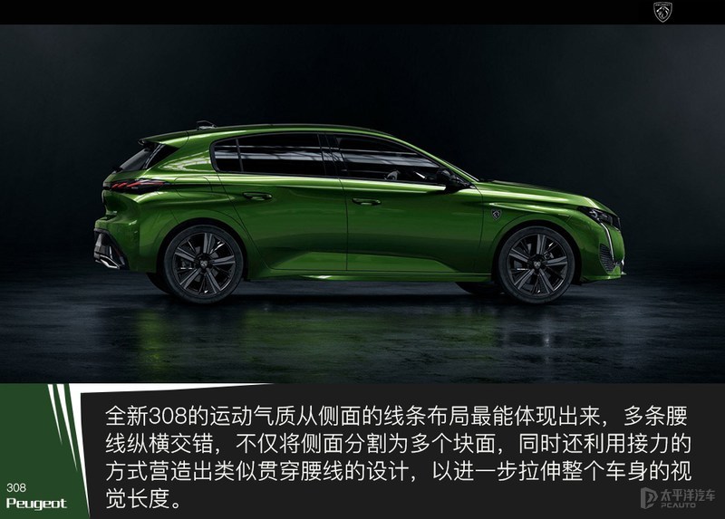 单从外观来看,全新308与现款在售的完全就是两款车。全新车型采用全新PSA EMP2平台打造,外观设计已经找不到一点现款的影子,而是向标致新的家族化设计靠拢。张扬凶悍的中网以及犀利的大灯处处彰显着全新308的与众不同,而整体车身线条以及尾部的处理,都明摆着告诉人们这是一台小钢炮,而不是一台买菜车。