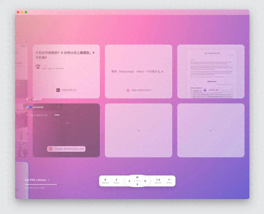 点击栈下面的加号,新建一个栈,继续添加网页。Alt+~ 隐藏左边的空间栏(Space Bar)。