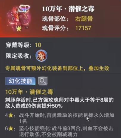 魂骨选择建议:适宜于那些极为习惯用刺豚在PVP中进行作战的玩家。