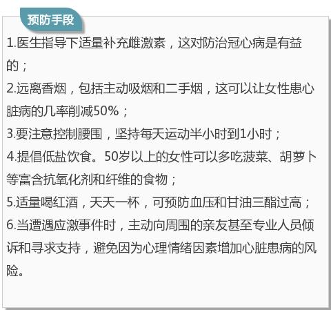 所以对于绝经后的女性来说,可以采取上文所介绍的这些手段来预防冠心病。