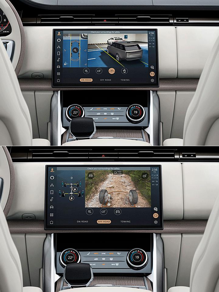 驾驶辅助科技部分,新世代揽胜亦导入集团普遍运用的 ClearSight 电子后视镜,可避免后座乘员或物体遮挡后方玻璃视线。并搭载整合 ClearSight 对地视野侦测的 360 度 3D 环颈摄影系统,拥有引擎盖透视功能,方便车主在越野或狭窄都会区低于 30 公里的低速行驶时掌握周遭路况。而举凡向全速域 ACC 主动跟车、主动车道维持置中、BSA 盲点侦测辅助、驾驶疲劳警示、后部碰撞预警辅助系统、后方车流警示、Clear Exit 乘客下车监视系统都一应俱全。甚至连 Remote Park Assist 遥控停车都在配备之列,可透过手机 App 将车辆从车库或车位中垂直移出/停入。