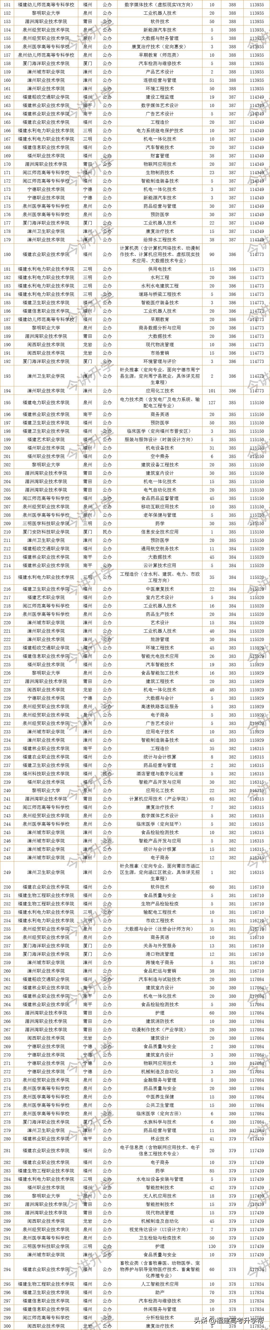 本期内容:福建高考300—400分省内专科批录取数据汇总