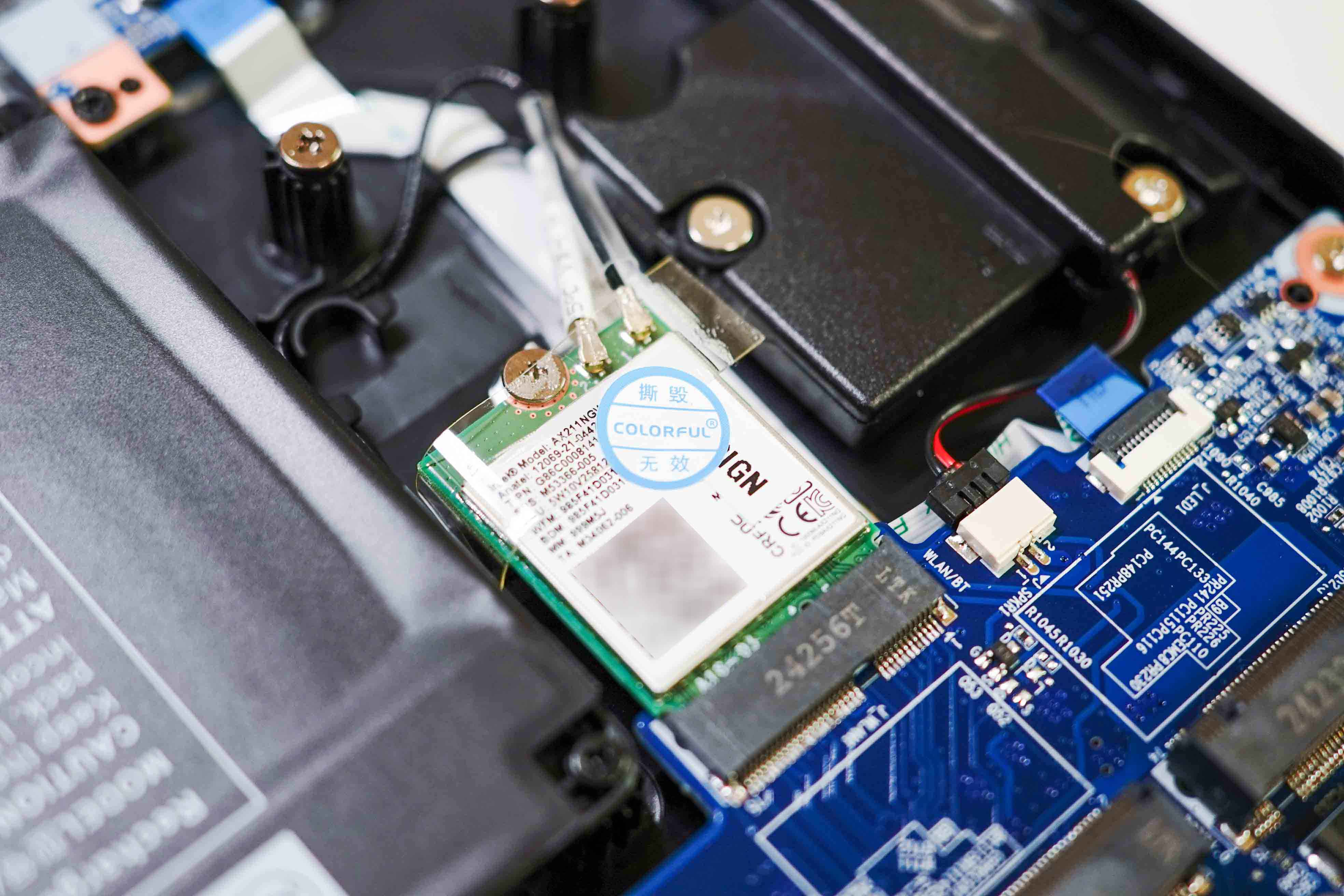 比较奇怪的是无线网卡,固定贴上有个易碎标,后续如果想换成WiFi7网卡,建议老老实实找官方售后操作,不然会导致过保,下面装回外壳,开始调试部分。