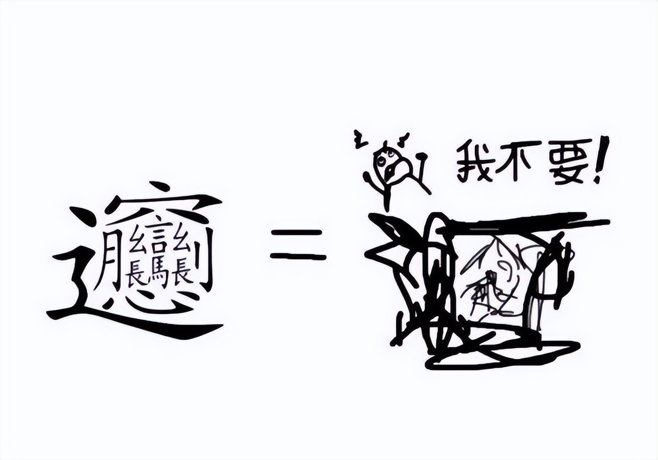 “biangbiang面”的“biang”字,不少学生就连照着画都画不出来,“中文咋这么难啊”,外国学生做“梗图”吐槽,看后真的是笑得直不起腰,怎么写个汉字还写急了呢?“我不要”三个大字,真的是越看越想笑。