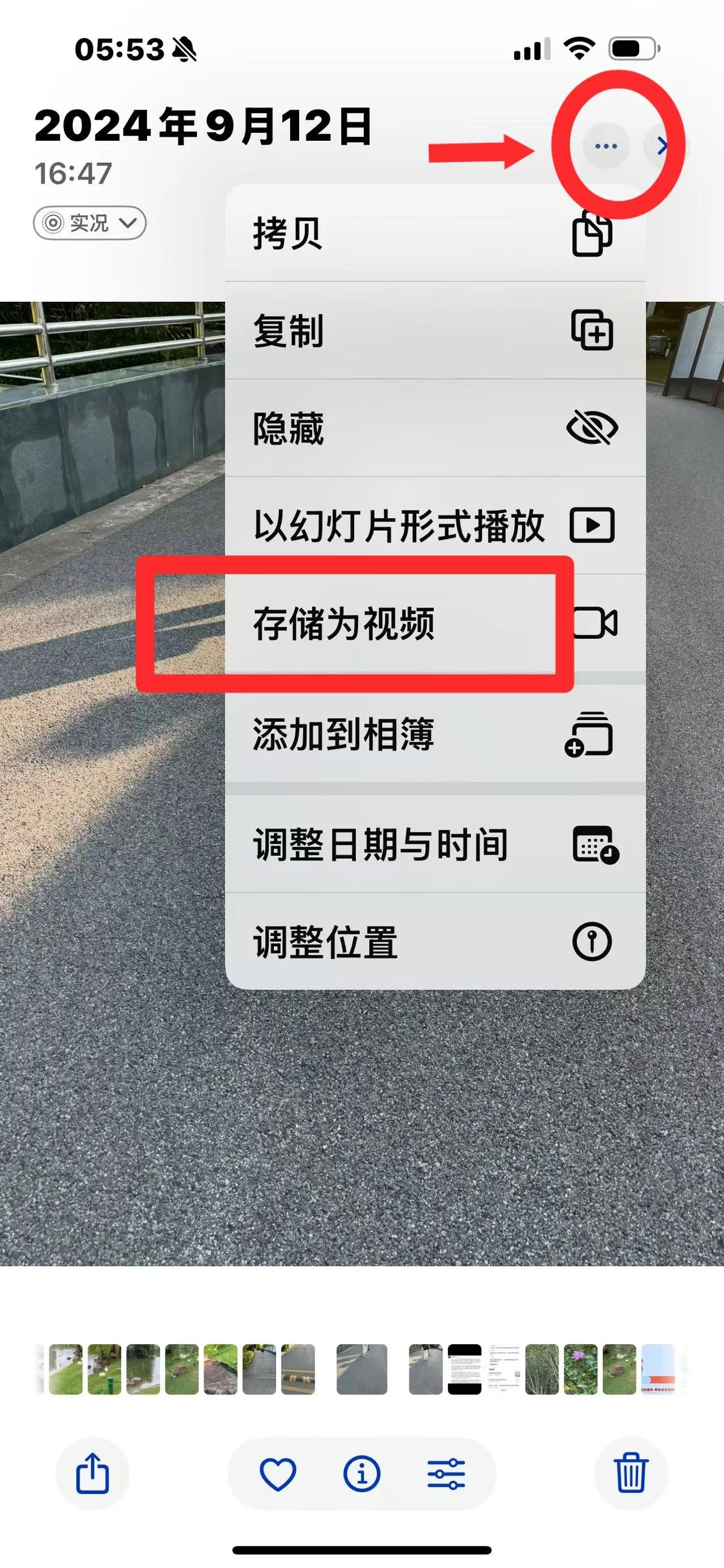 谁说照片只能定格瞬间?点开「实况照片」→右上角「…」→选择「存储为视频」,按下快门前后的1.5秒鲜活画面全被唤醒:风中凌乱的发丝、刚要绽开的笑容、溅起的浪花水珠……连猫咪甩尾巴的残影都能完美捕捉!发朋友圈时配文「按下快门的那一刻,风也有了故事」,氛围感直接拉满~