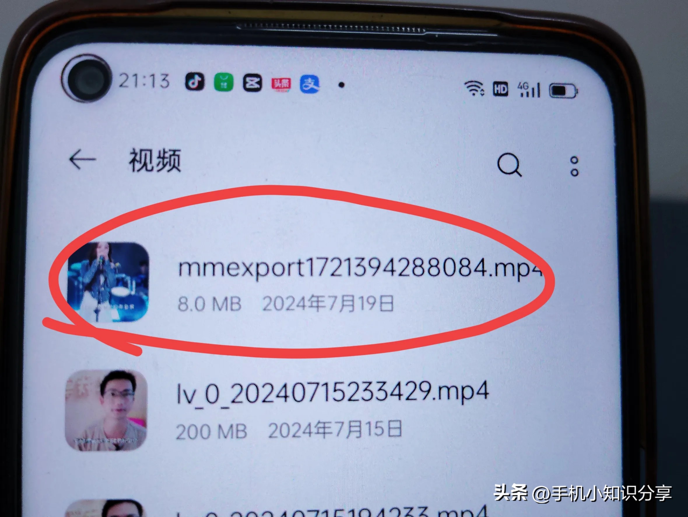 这个视频就是刚才去除水印的视频,也就是抖音的歌曲。有无水印对我们影响不大,长按该视频,(如上图所示)