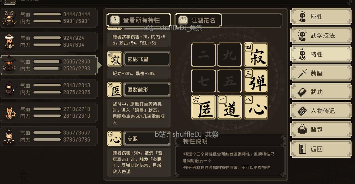 入队增加2个特性:【匿影藏形】和【心眼】 心眼伤害很爆炸 甚至可以用来碰瓷boss