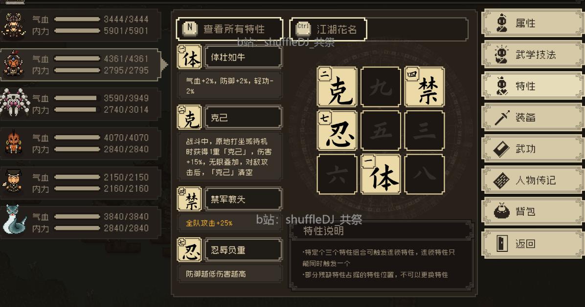 邀请入队 也是2个特性【克己】、【忍辱负重】