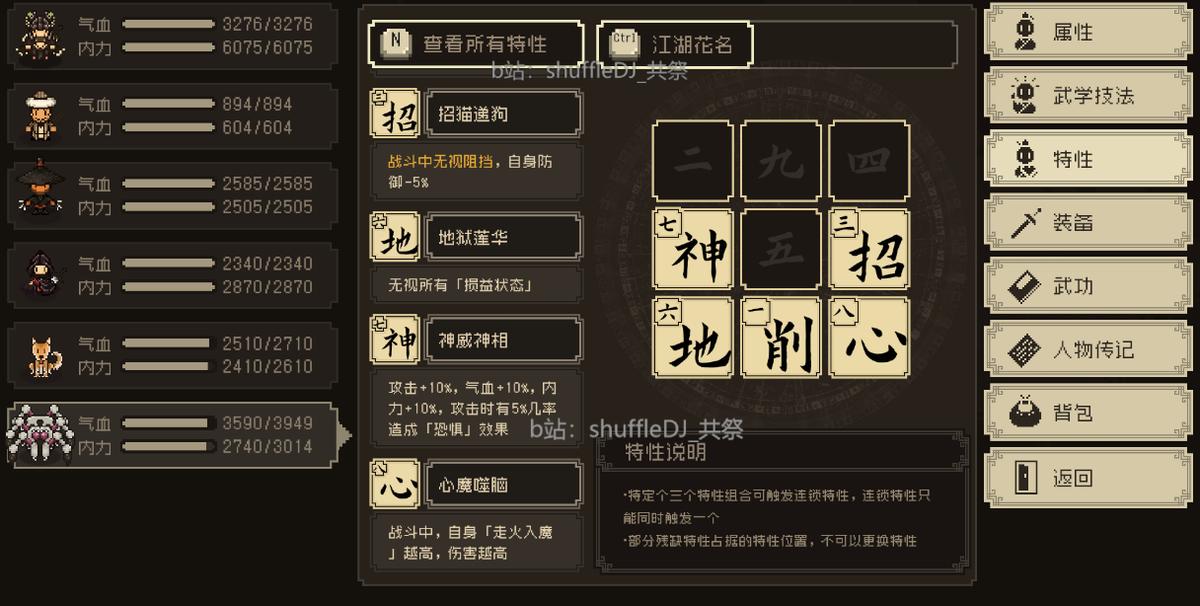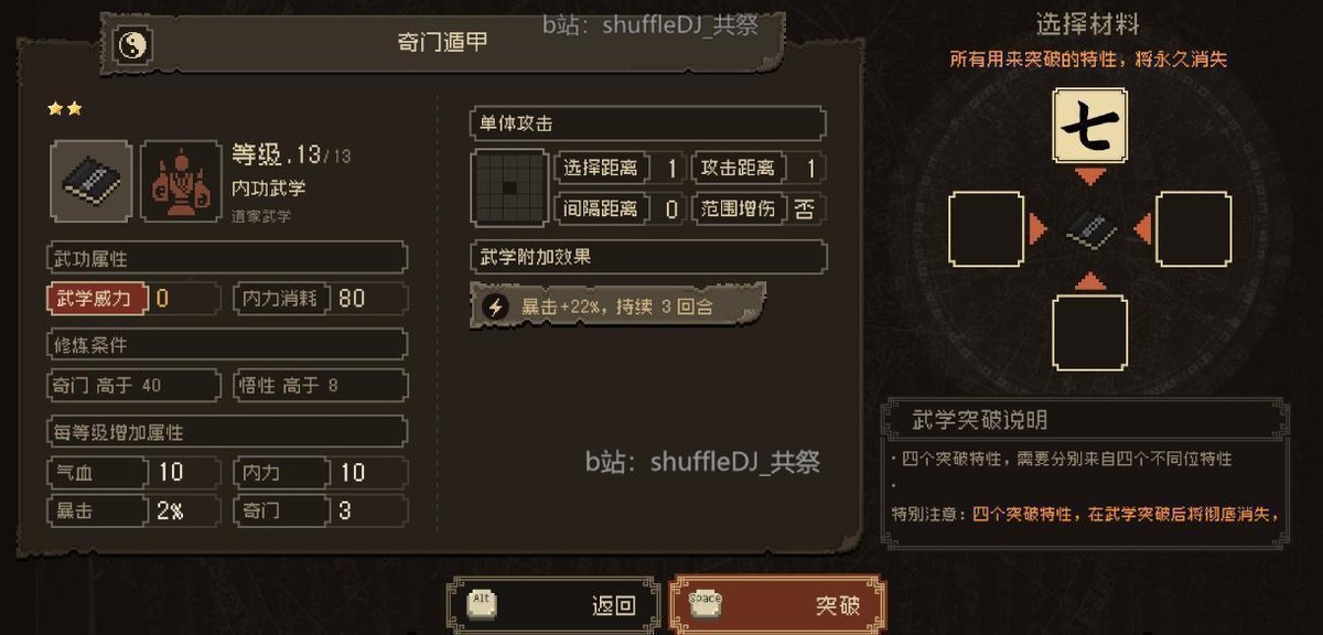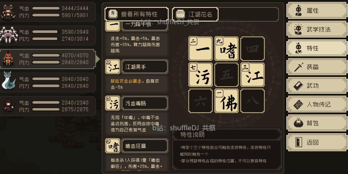 还有一个武学突破 简单说就是可以把你不要的特性捐了给武学附加属性