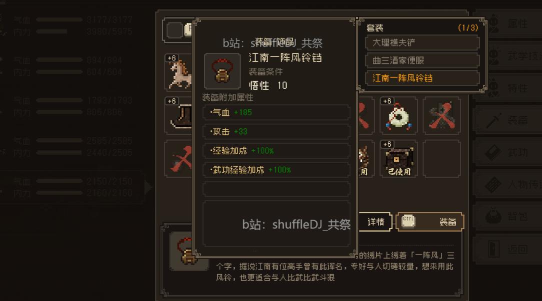 入队给一个装备 “江南一阵风铃铛” 挺不错 加经验的