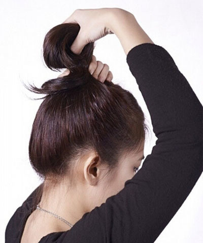 步骤五:将剩下的发尾缠绕丸子头并用发夹固定。