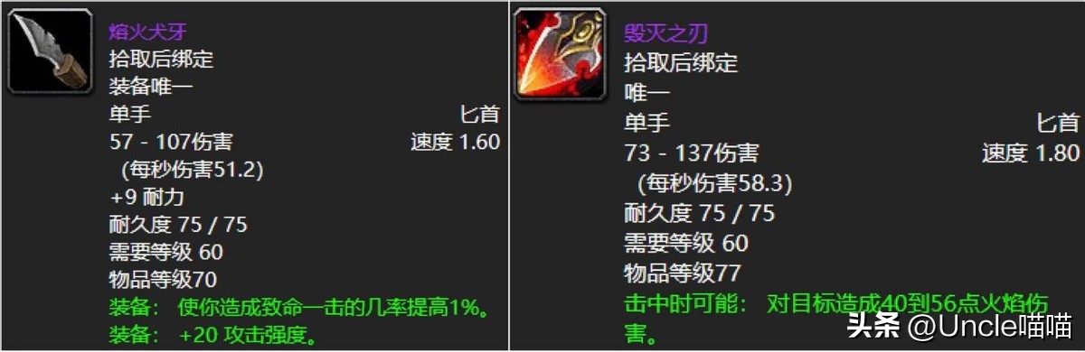 毁灭配狗牙这对经典匕首老伙计,不仅实力在线,颜值也绝对没有话说。基本上就是拿了狗牙想毁灭,有了毁灭盼狗牙的存在。甚至喵叔还见过我家一大兄弟上一个CD拿了狗牙根本不敢穿戴上去打输出,生怕这个CD出了毁灭之刃被心机小可爱顶破头,你敢信!