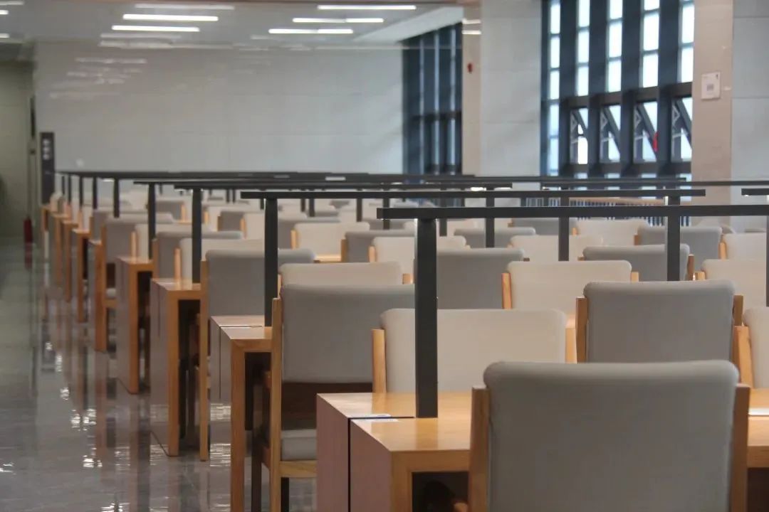 阅览座席有约1200个,馆藏书量60多万册,每一层的窗边都是一排一排的自习座椅,宽敞明亮。