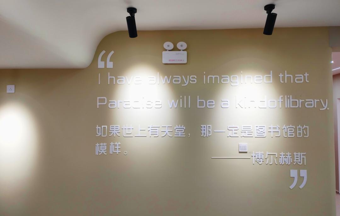 进门后如果不仔细看,对面那个高墙之上你只会觉得摆出来许许多多的藏书,但是如果你细看你会发现,这里用藏书刻画出了光岳楼的模样。