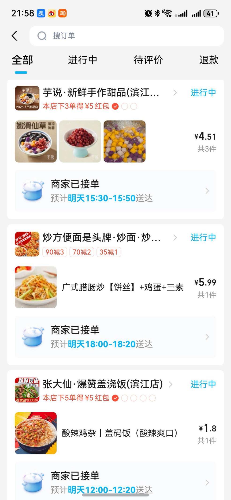 有人早早安排好今天的一日三餐,也有人说:“人麻了,昨天晚上一顿下单,不少订单是后半夜派送的,一早起来门口一堆外卖。”“昨晚买的已经到家了,冰箱已经放不下了。”