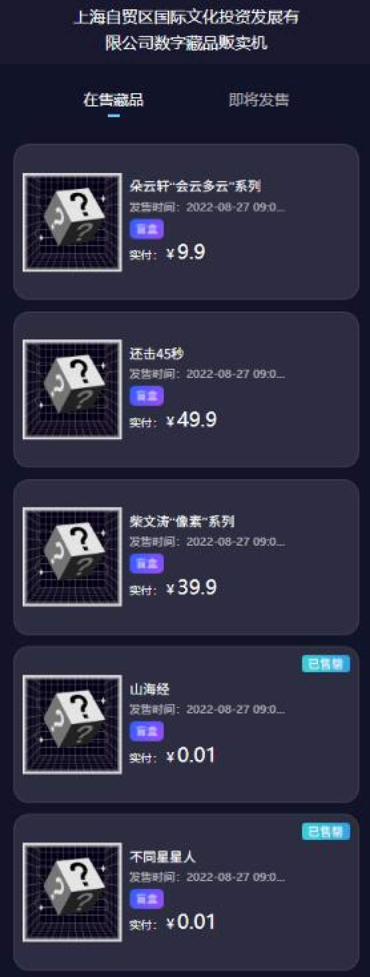 自贸数藏收集特色数字文创