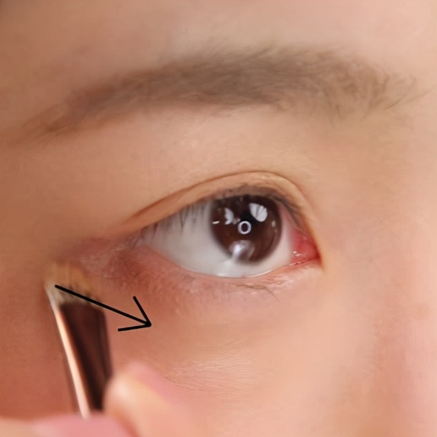 1.在眼窝内眼角涂上中色