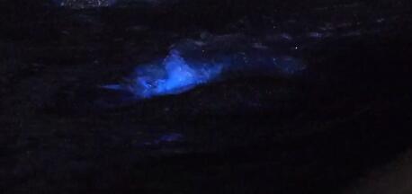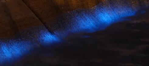 “蓝眼泪”又被称为荧光海,本质是一类海洋生物(如海萤和夜光藻等)产生的发光现象。在合适环境条件下,夜光藻细胞到达一定密度时,在夜晚就会因为扰动等刺激而发出蓝光。(总台记者 王晓沛 韩月玥)