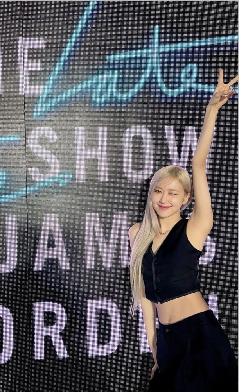 在表演《Kill This Love》时,“全员THE BLONDS”中的Rosé穿的是THE BLONDS 2016年春夏系列,金属银白色将她的美衬托得更凌烈。